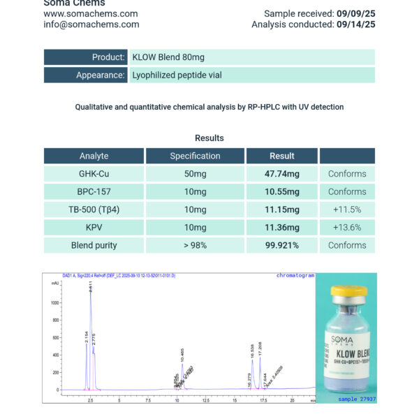 Research Supply Company “Do you stock Klow Blend 80mg for laboratory research?” Verify they provide a Certificate of Analysis (CoA).
